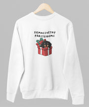 Balts UNISEX džemperis bez kapuces "Ziemassvētku pārsteigums"