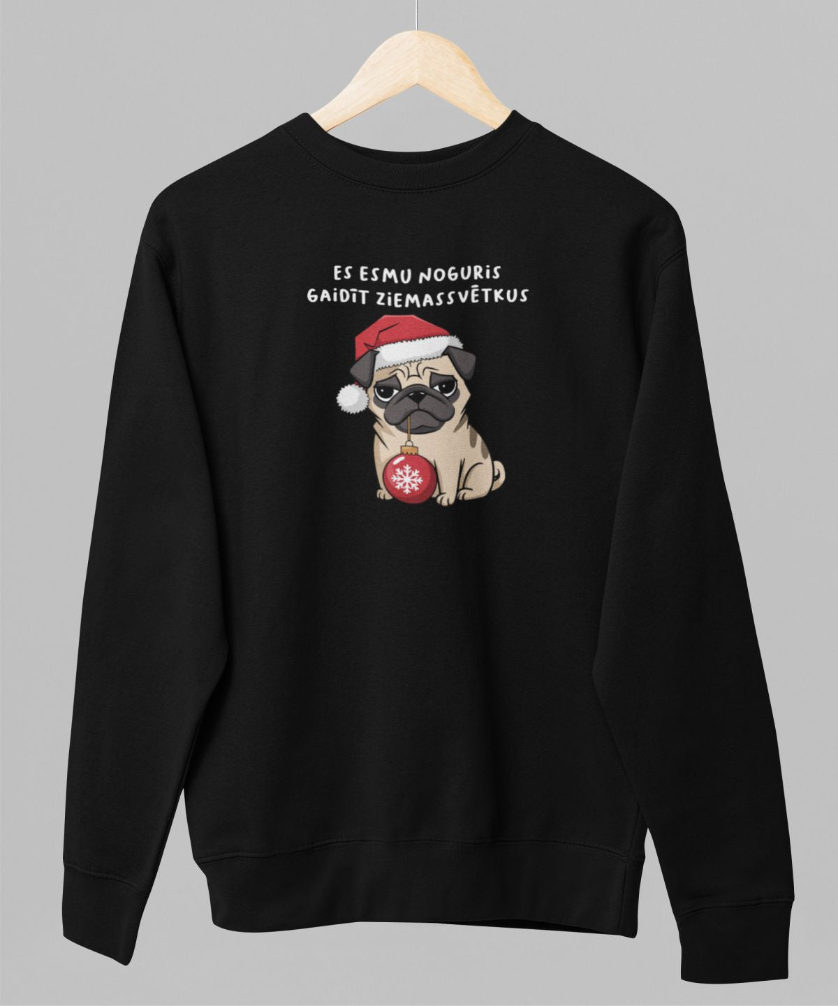 Melns UNISEX džemperis bez kapuces "Es esmu noguris gaidīt Ziemassvētkus"