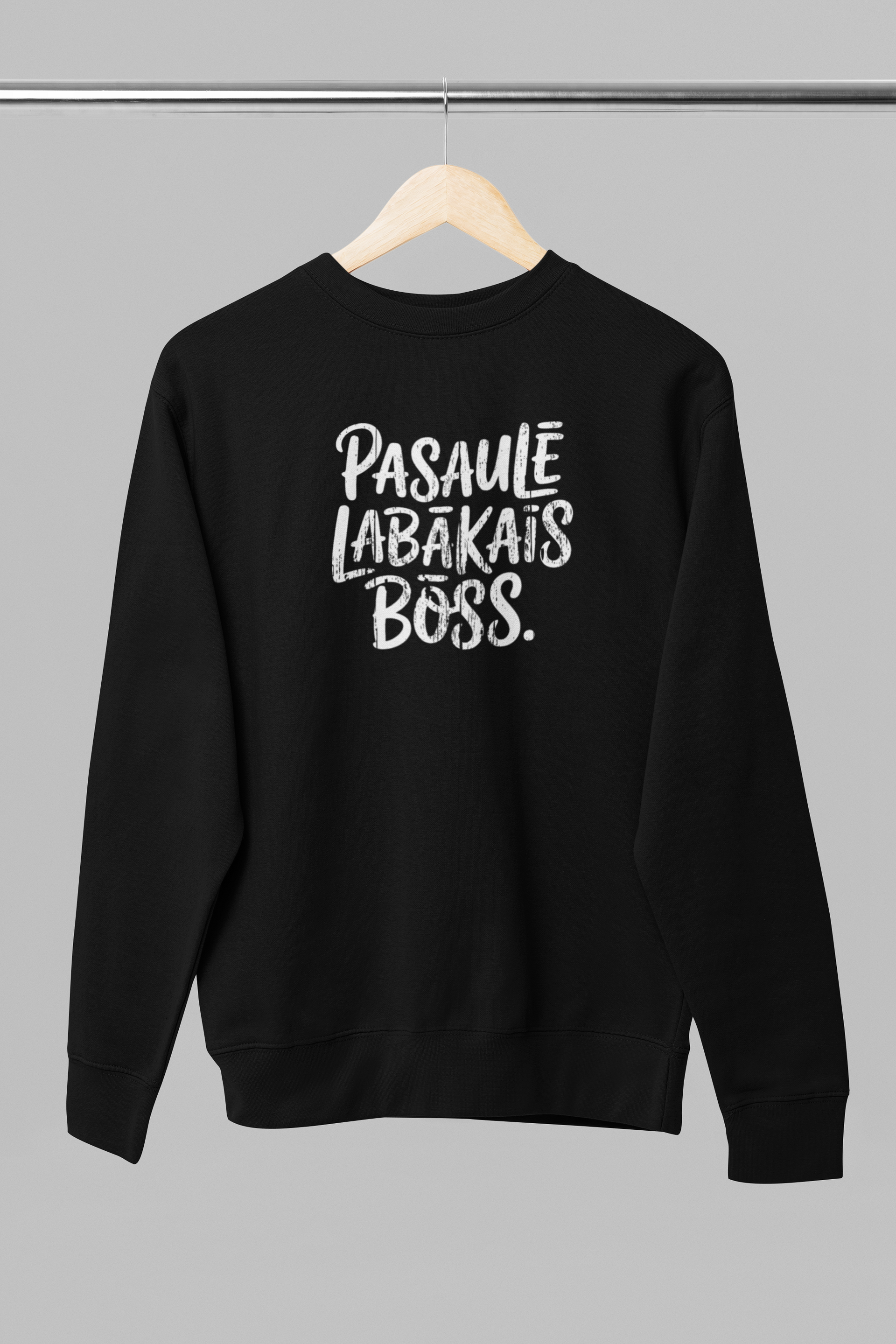 Melns UNISEX džemperis bez kapuces "Pasaulē labākais boss"