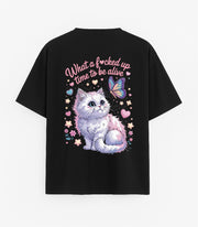 Oversized black T-shirt "What a time"