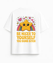 Oversized white T-shirt "Be nicer"