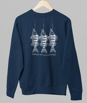 Sininen unisex collegepaita "Parhaat isit ovat kalastajia"