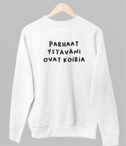 Valkoinen unisex collegepaita "Parhaat ystäväni ovat koiria"