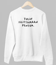 Valkoinen unisex collegepaita "Tulin silittämään pentua."