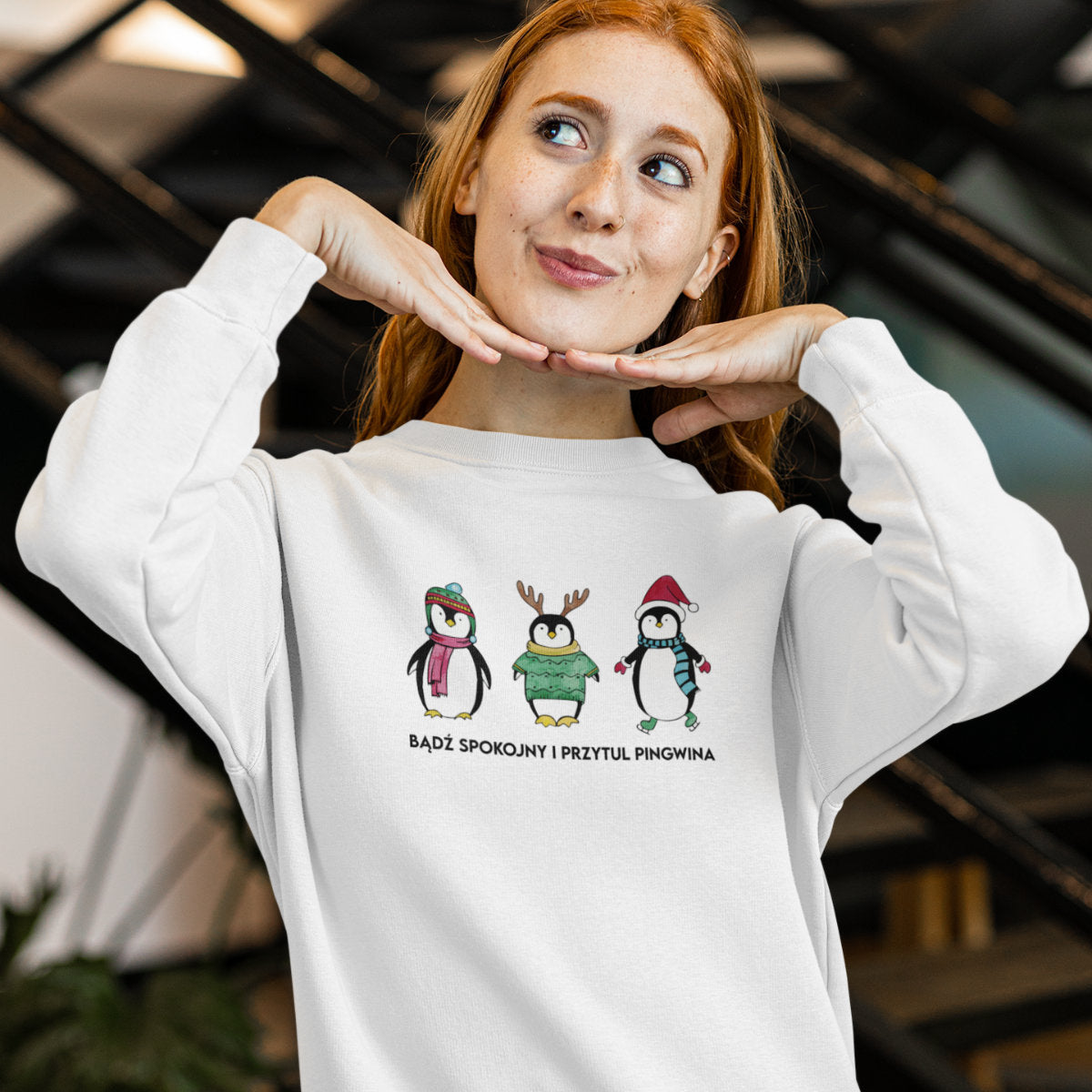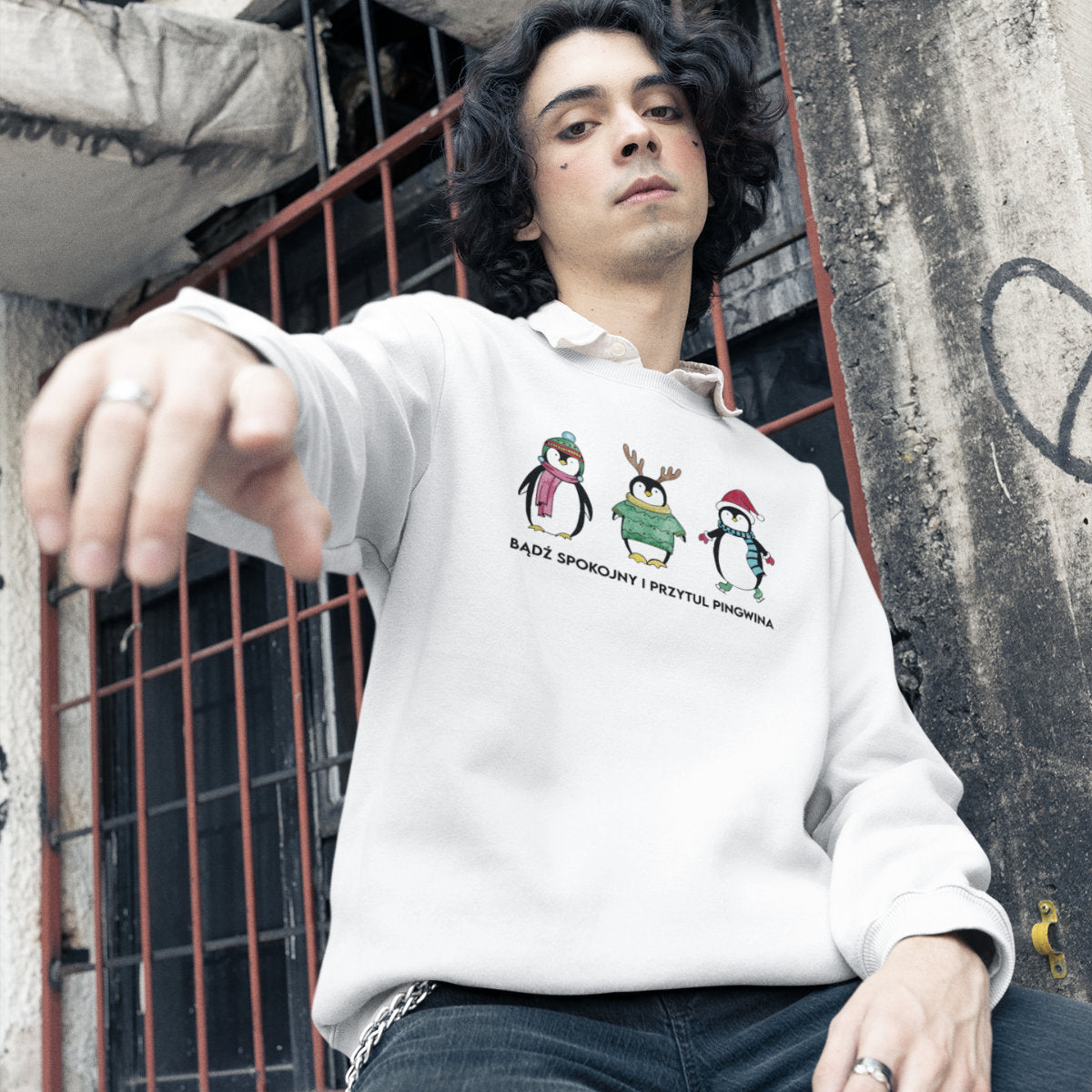Biała bluza Przytul pingwina