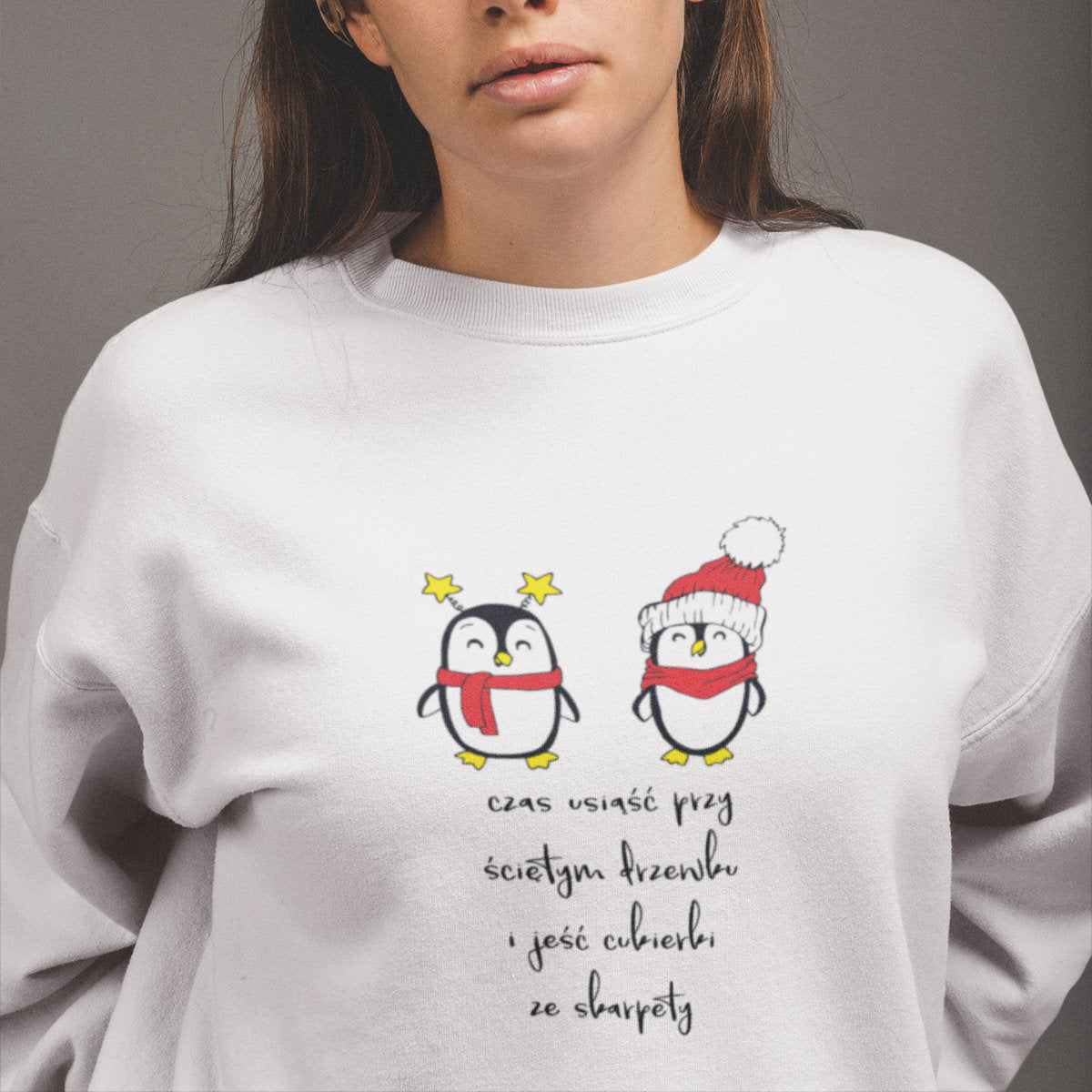 UNISEX Biała bluza Czas usiąść przy ściętym drzewku