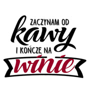 Biała UNISEX koszulka Zaczynam od kawy i kończę na winie