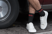 TATA Rocks - Skarpetki z napisami. Czerwony. Zapakowane w stylowe brązowe pudełko.