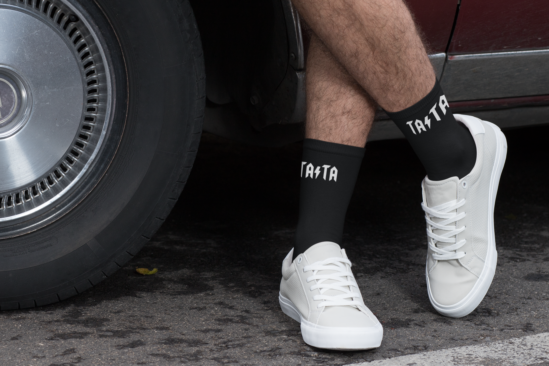 TATA Rocks - Skarpetki z napisami. Biały. Zapakowane w stylowe brązowe pudełko.