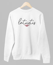 Balts UNISEX džemperis bez kapuces "Es esmu latvietis"