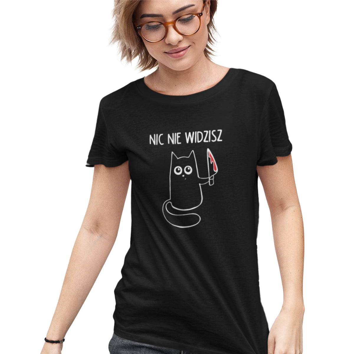 Czarna UNISEX koszulka Nic nie widzisz