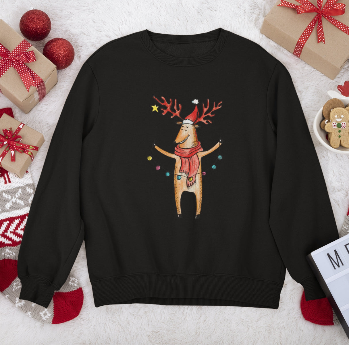 Melns UNISEX džemperis bez kapuces "Briedis"