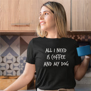 Czarna UNISEX koszulka "All I need is coffee and my dog"