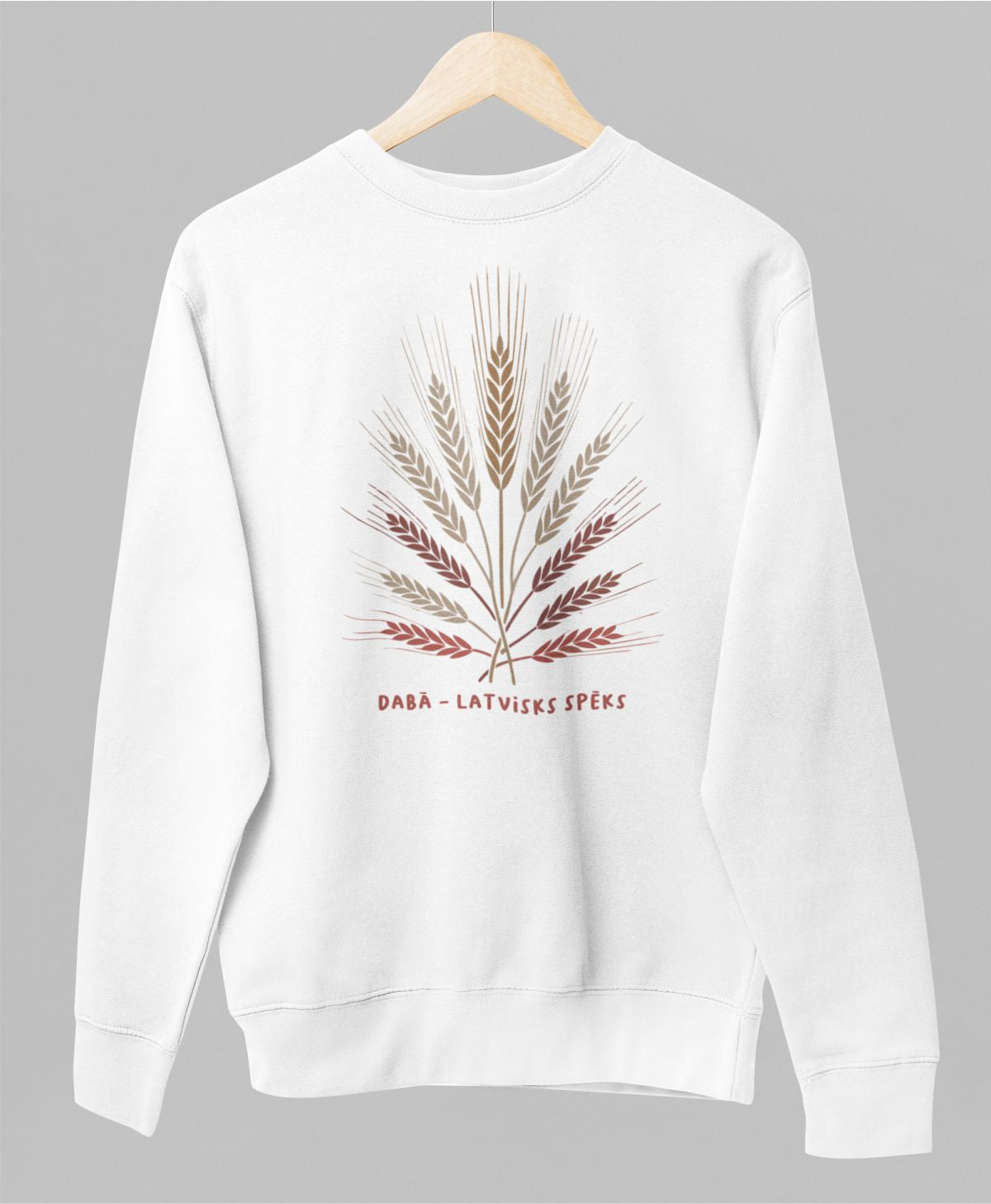 Balts UNISEX džemperis bez kapuces "Dabā – latvisks spēks"