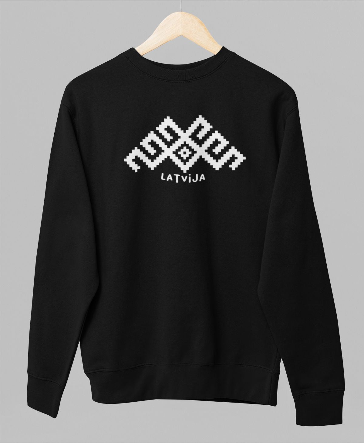 Melns UNISEX džemperis bez kapuces "Latviešu raksti"