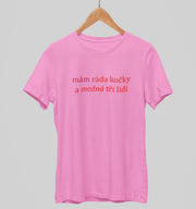 Růžové unisex tričko "Mám ráda kočky a možná tři lidi"