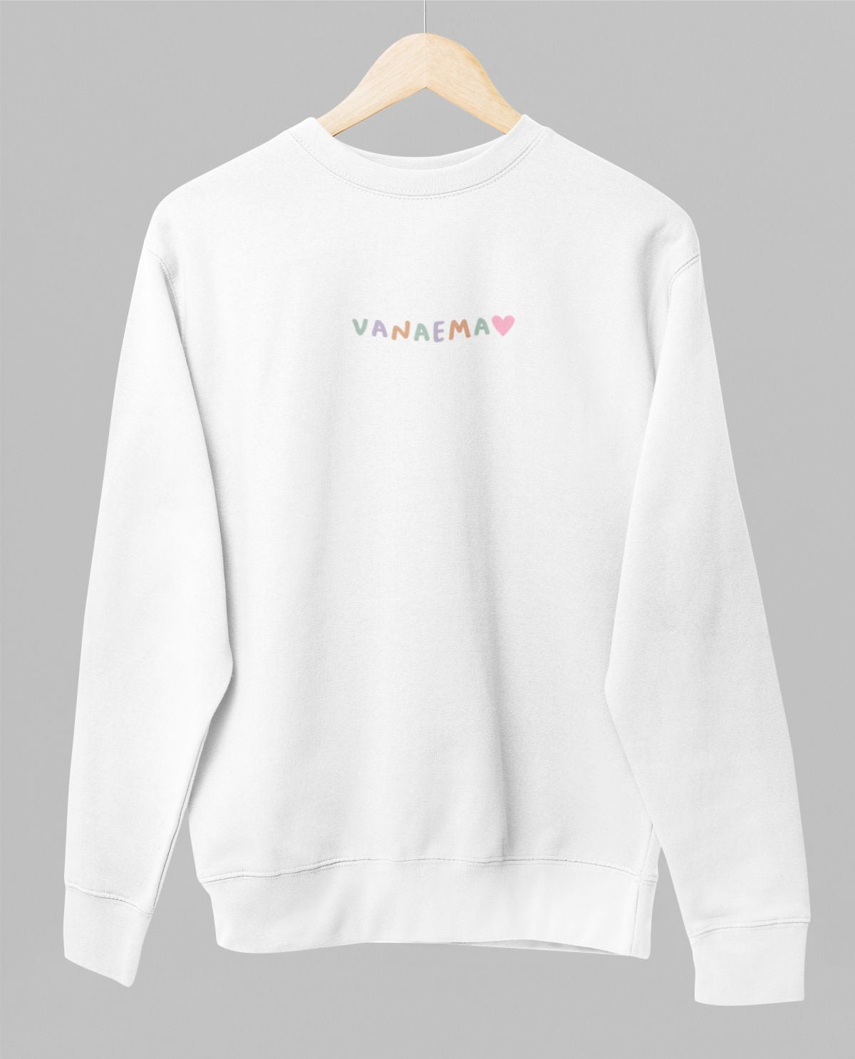 Valge UNISEX dressipluus ilma kapuutsita "Värviline vanaema"