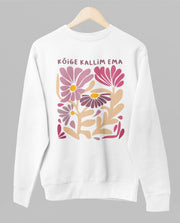 Valge UNISEX dressipluus ilma kapuutsita "Ema lilleaed"