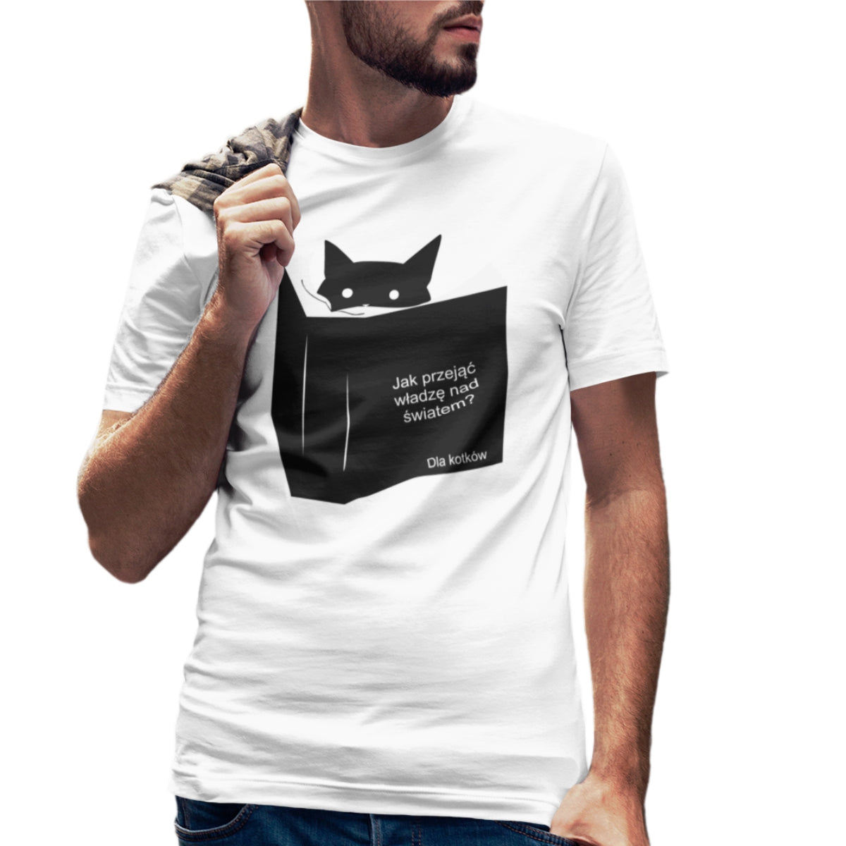 Biała UNISEX koszulka Jak przejąć władzę nad światem? Dla kotków
