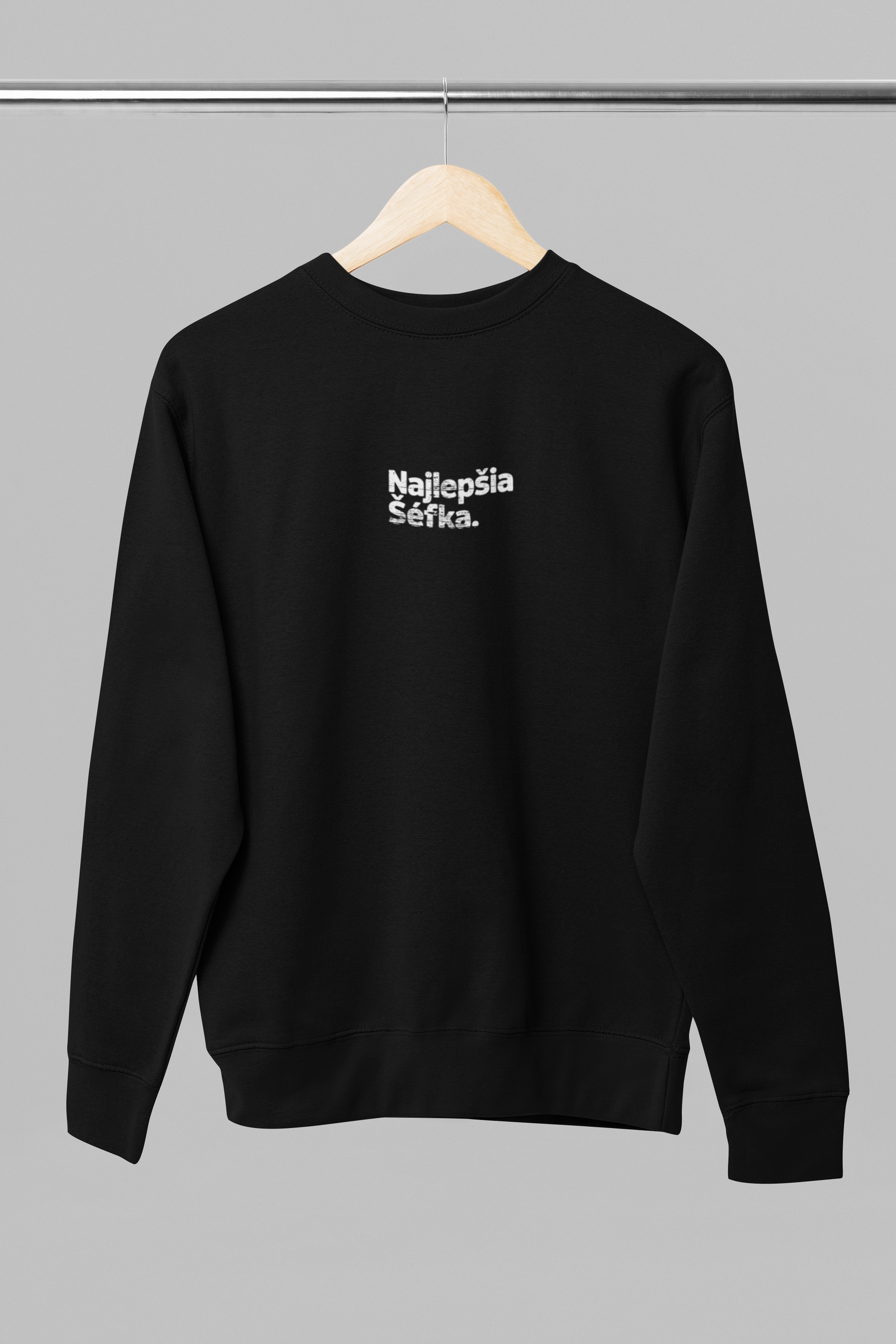 Čierna unisex mikina bez kapucne "Najlepšia šéfka"