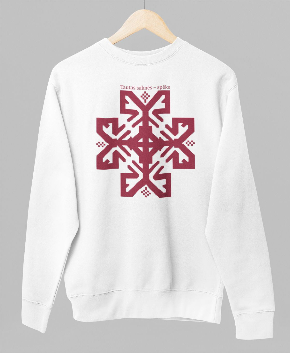 Balts UNISEX džemperis bez kapuces "Tautas saknēs – spēks"