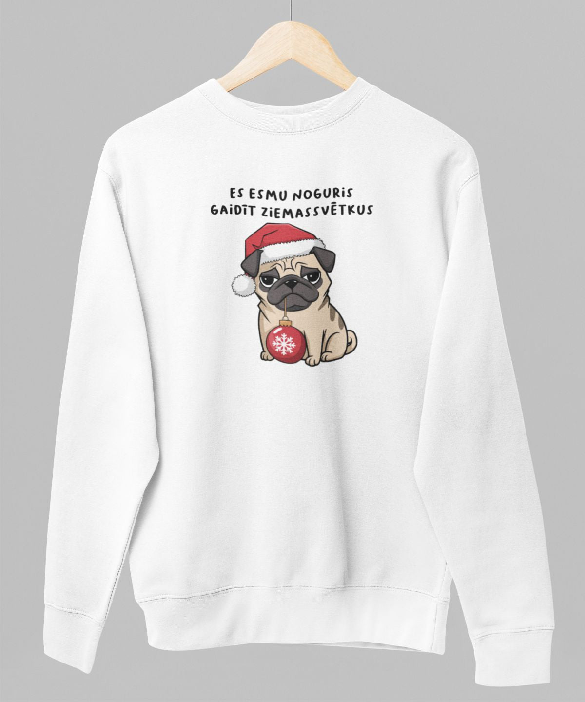 Balts UNISEX džemperis bez kapuces "Es esmu noguris gaidīt Ziemassvētkus"