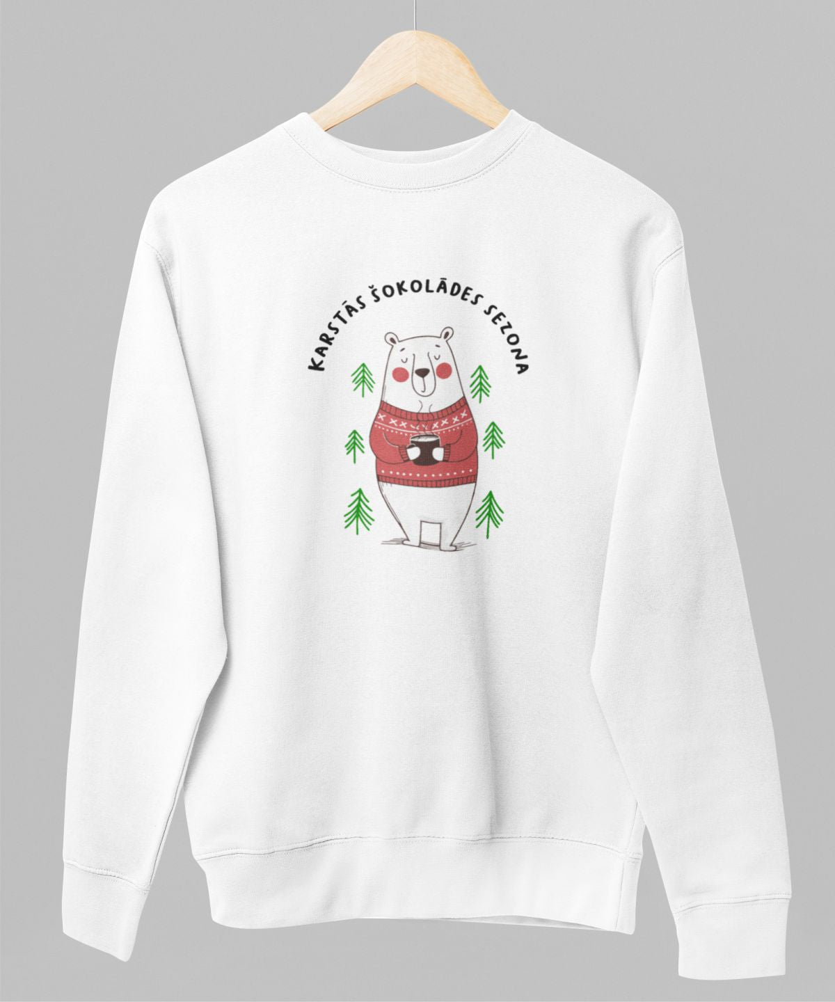 Balts UNISEX džemperis bez kapuces "Karstās šokolādes sezona"