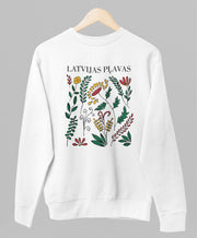 Balts UNISEX džemperis bez kapuces "Latvijas pļavas"