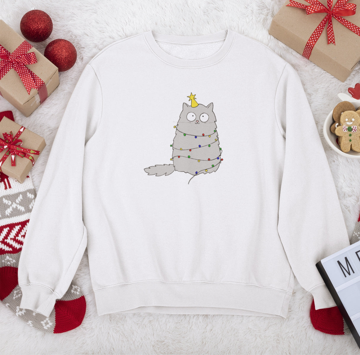 Balts UNISEX džemperis bez kapuces "Ziemassvētki, murr"