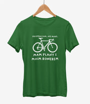 Ciemnozielona UNISEX koszulka "Przepraszam, nie mogę, mam plany z moim rowerem"