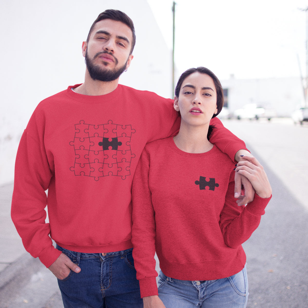 Punased kapuutsita dressipluusid paaridele „Pusle“