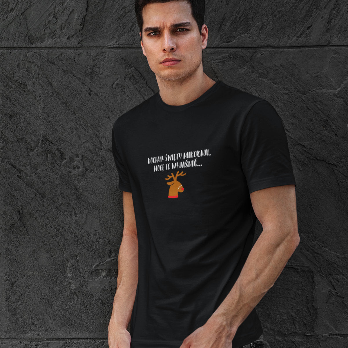 Czarny UNISEX T-shirt Kochany Święty Mikołaju