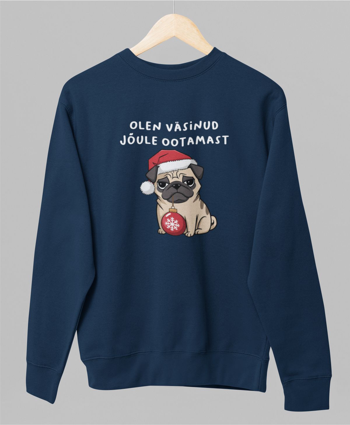 Sinine UNISEX pusaer ilma kapuutsita "Olen väsinud jõule ootamast"