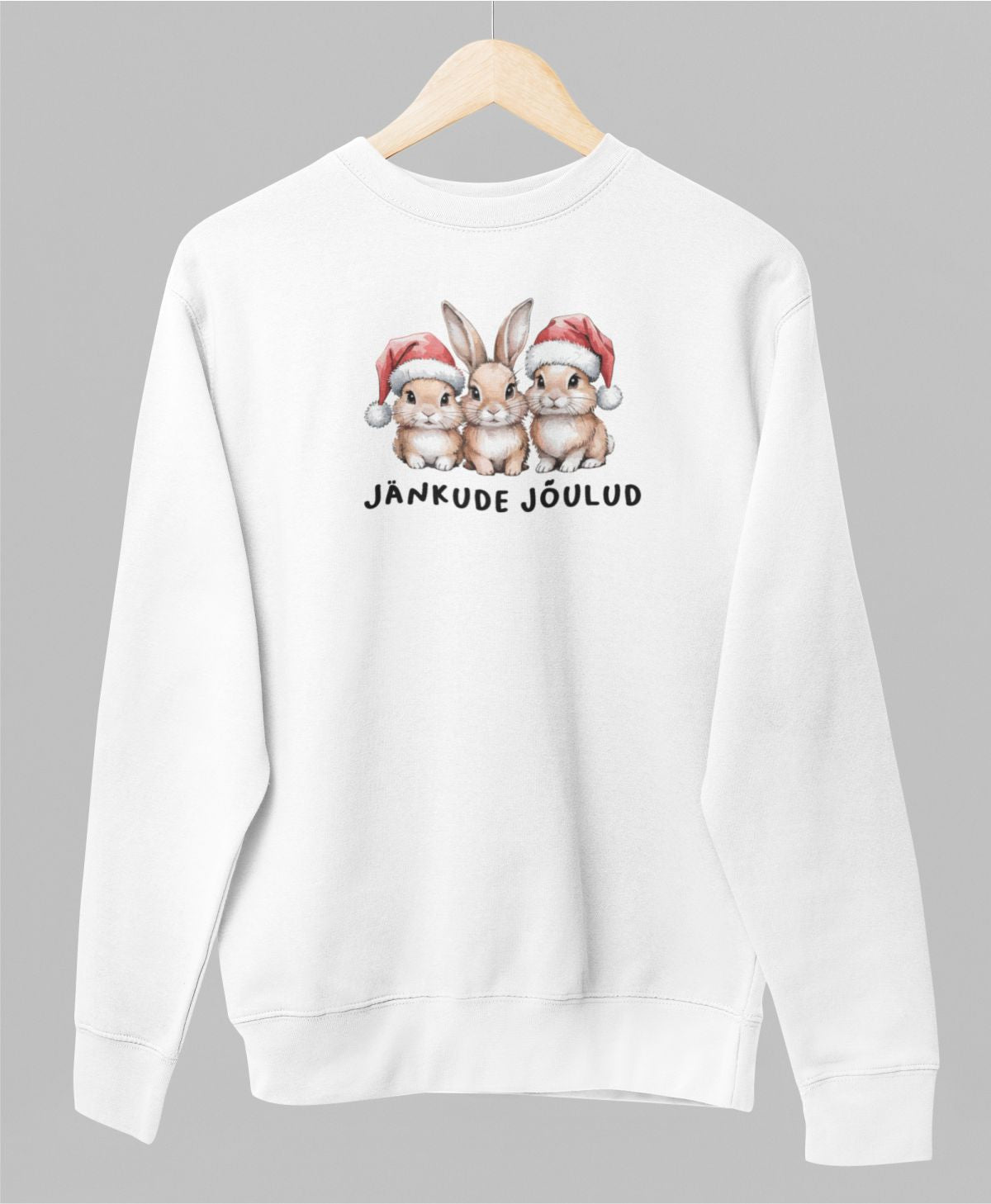Valge UNISEX pusaer ilma kapuutsita "Jänkude jõulud"