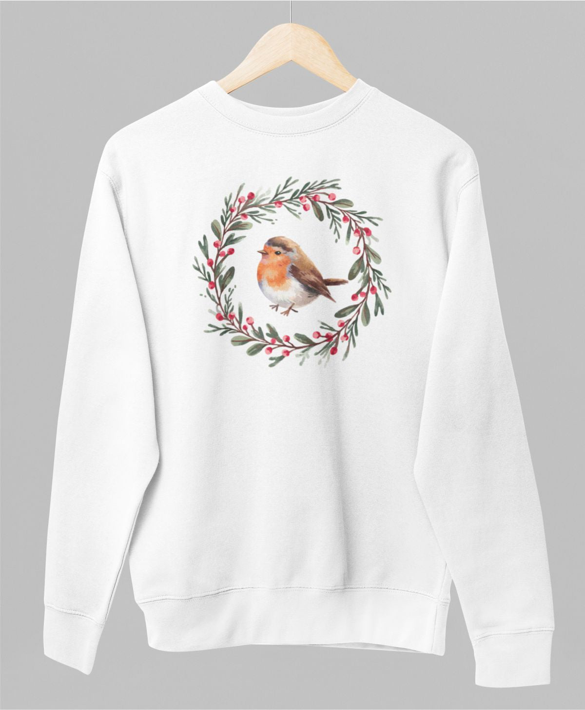 Valge UNISEX pusaer ilma kapuutsita "Jõululinnuke"