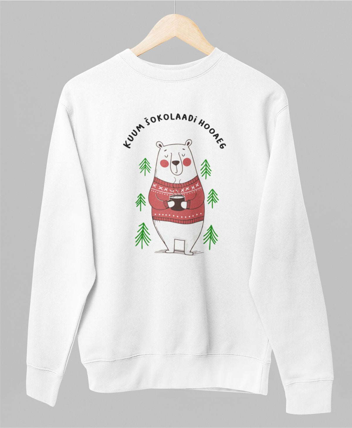Valge UNISEX pusaer ilma kapuutsita "Kuum šokolaadi hooaeg"