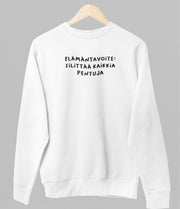 Valkoinen unisex collegepaita "Elämäntavoite"