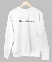 Valkoinen unisex collegepaita "Made of silence"