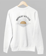 Valkoinen unisex collegepaita "Midnight sun club"