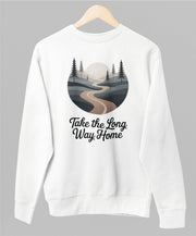 Valkoinen unisex collegepaita "Take the long way home"