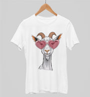 Valkoiset unisex T-paidat "Vuohi aurinkolaseissa"